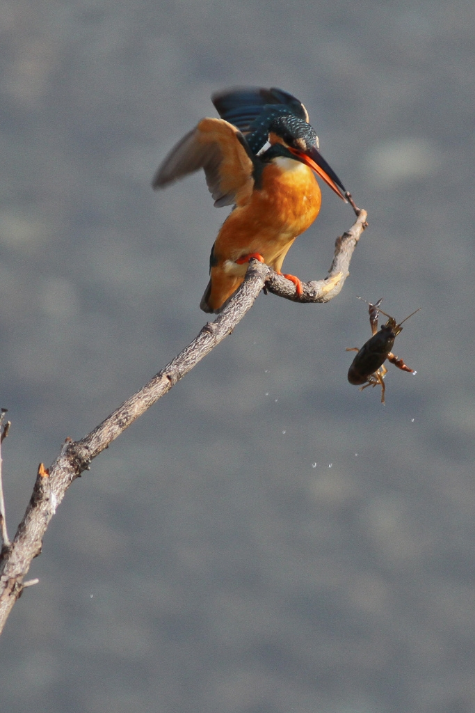 3 ザリガニを間違えて捕って、驚くカワセミ