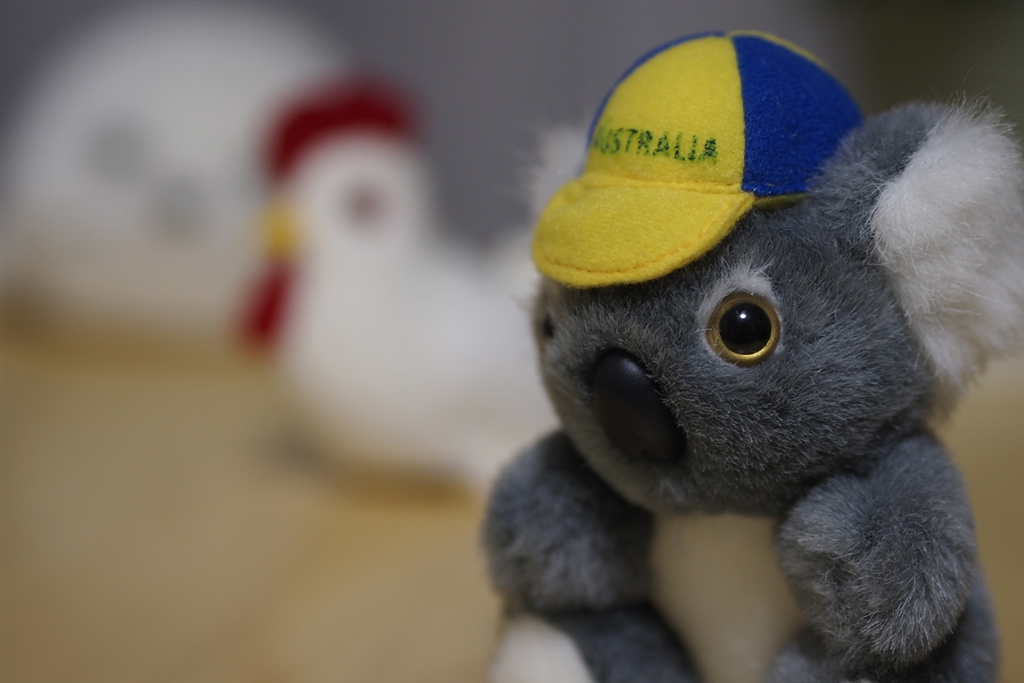 後ろのニワトリまで約20センチ。そこからゴマアザラシまで約20センチの距離です。