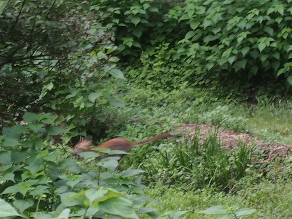 野生の狐でしょうか?尻尾が長いですよね
