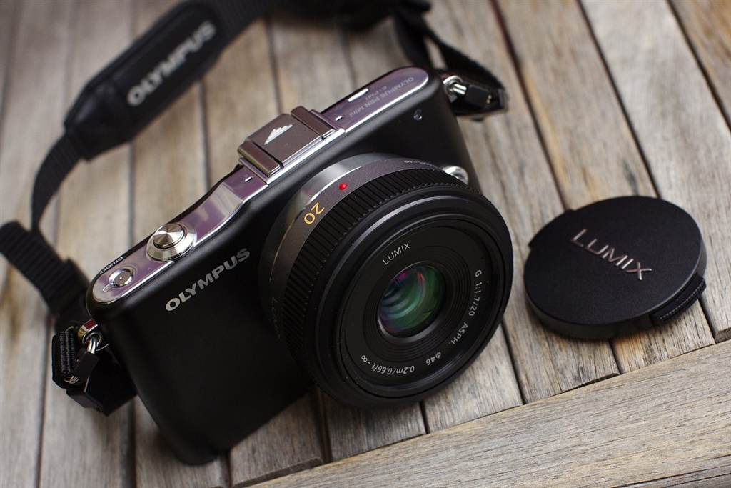 Lumix 20mm/F1.7を装着したE-PM1です