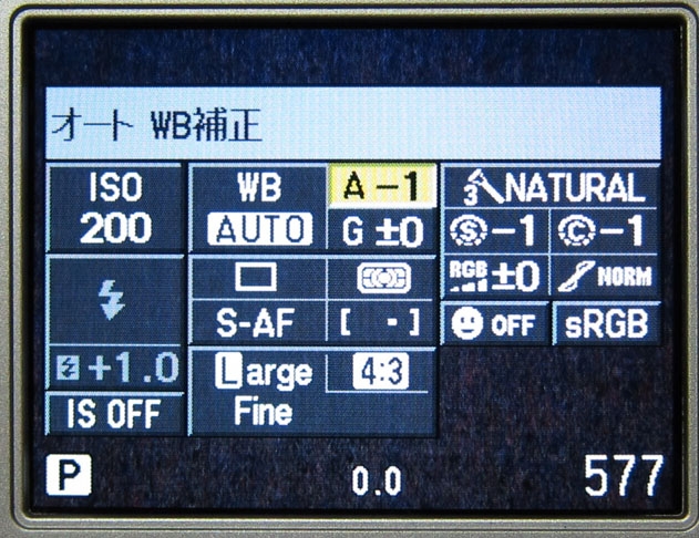 | 絞り数値 | F2.2 | 露出補正 | -0.3 |