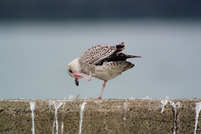 セグロカモメ幼鳥の頭掻き