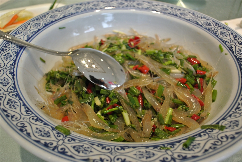 出張先で食べた生きたエビの和え物