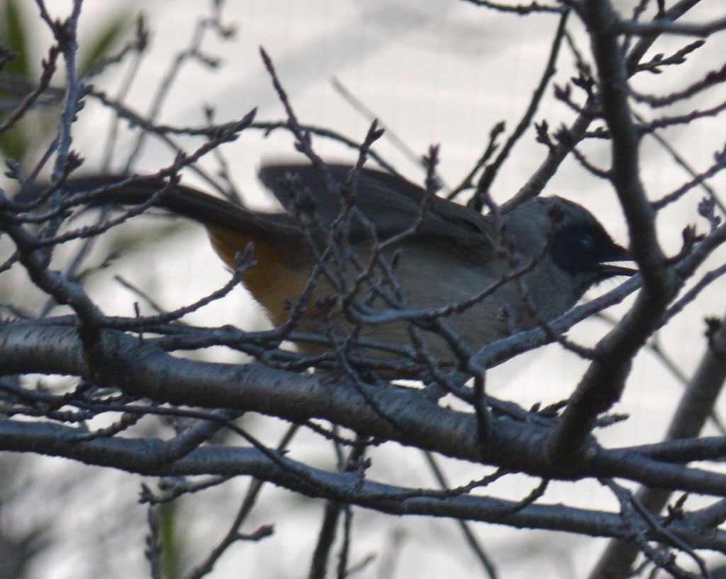 顔黒画眉鳥(外来種)の証拠写真 枝に邪魔されて