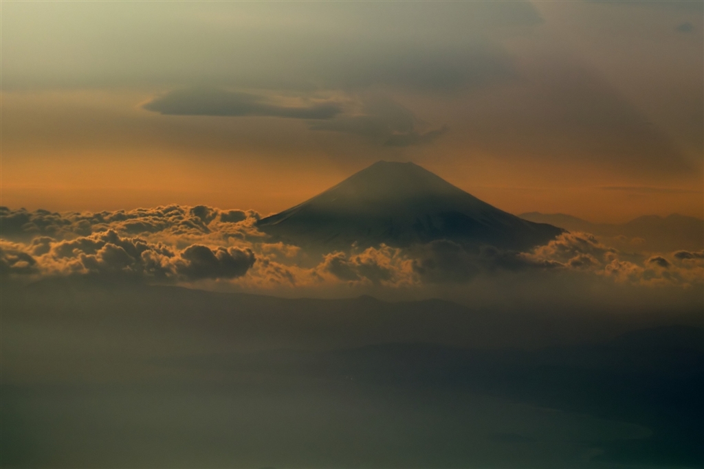 夕照の富士