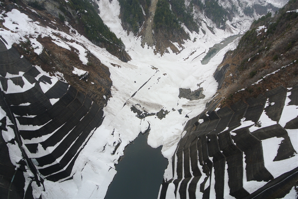 黒部ダムの放水口直下