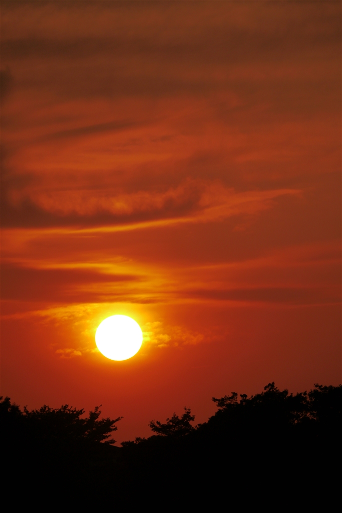45-175の望遠端で夕日を