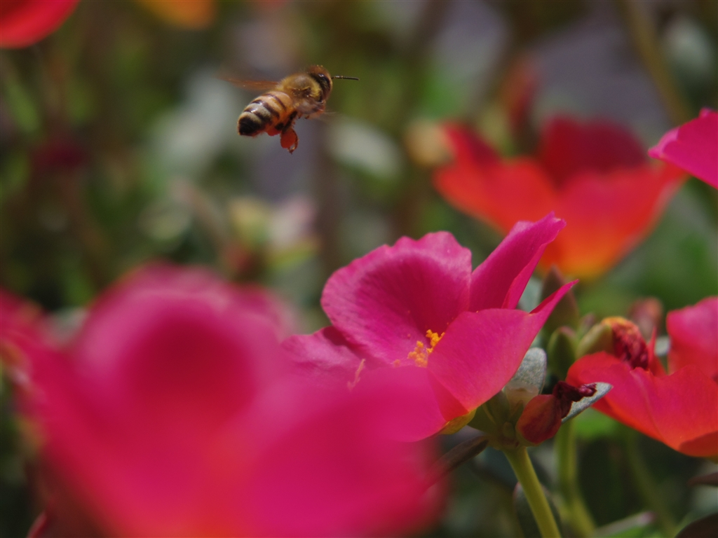 ミツバチとマツバボタン(?)(06+Close Up Lens)