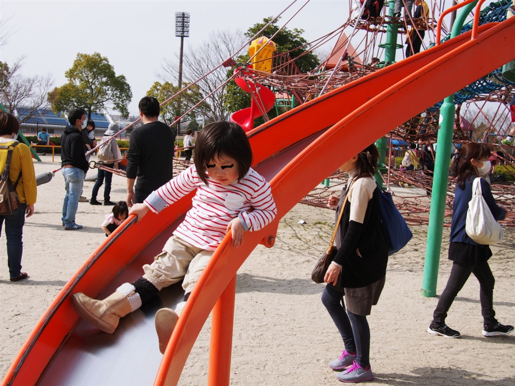 20/1.7「A」「単」、滑り台の位置にある程度ピンあわせておいてカメラ振りながら