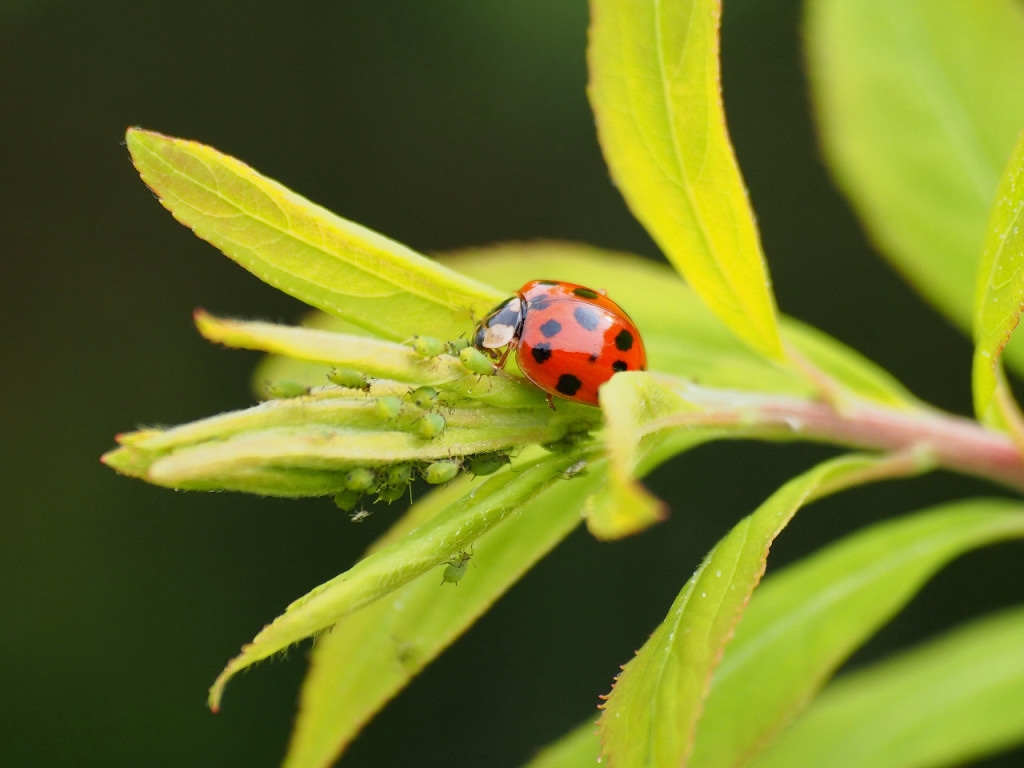 アブラムシを捕食するテントウムシ