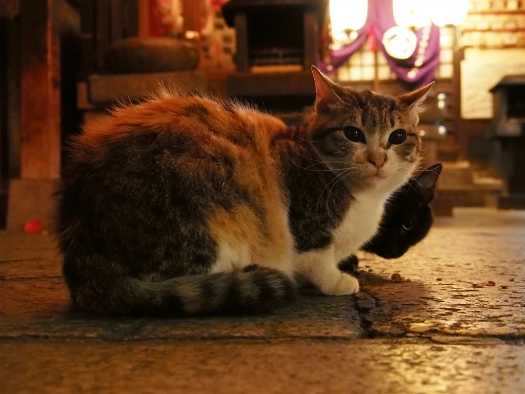 みけちゃんのうしろに黒ちゃんがいます。ほんと影みたい(笑)