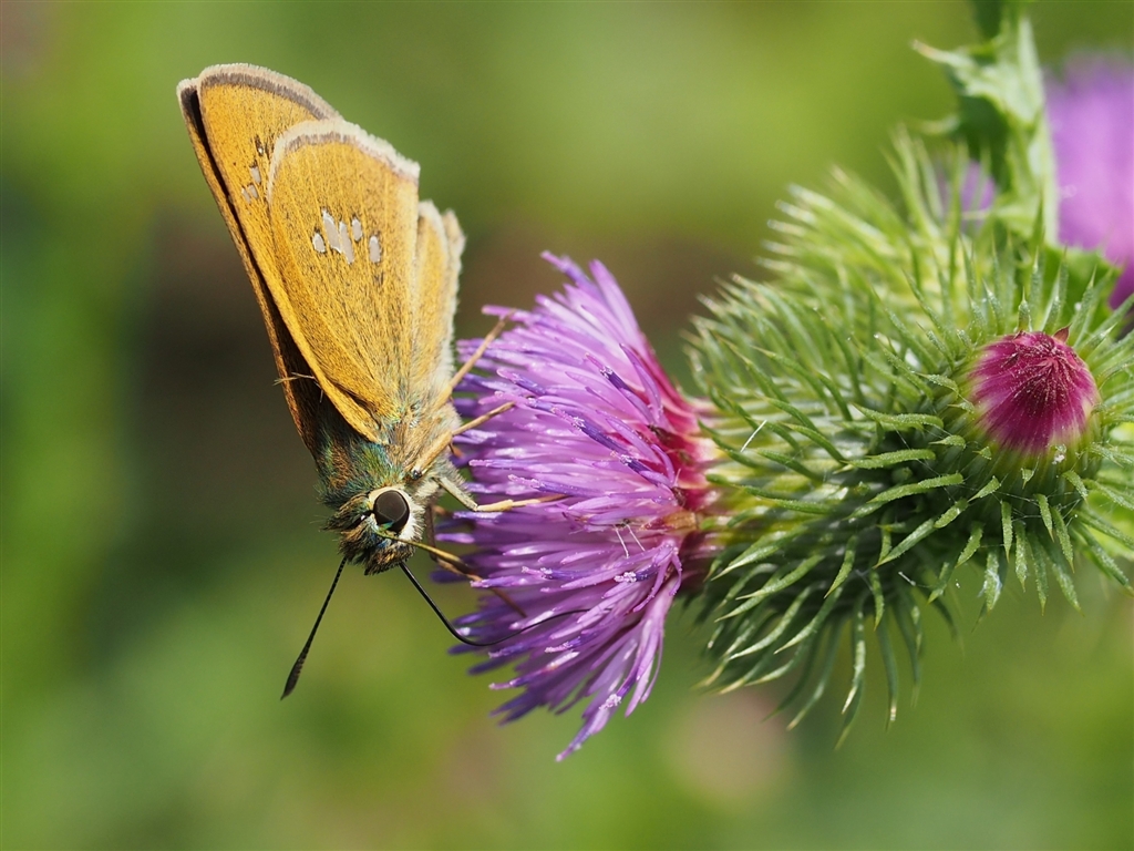 イチモンジセセリとアザミの花
