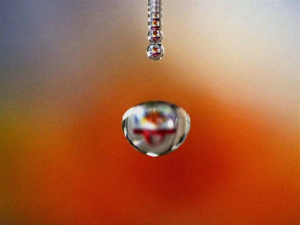 水滴にピントを合わせて、