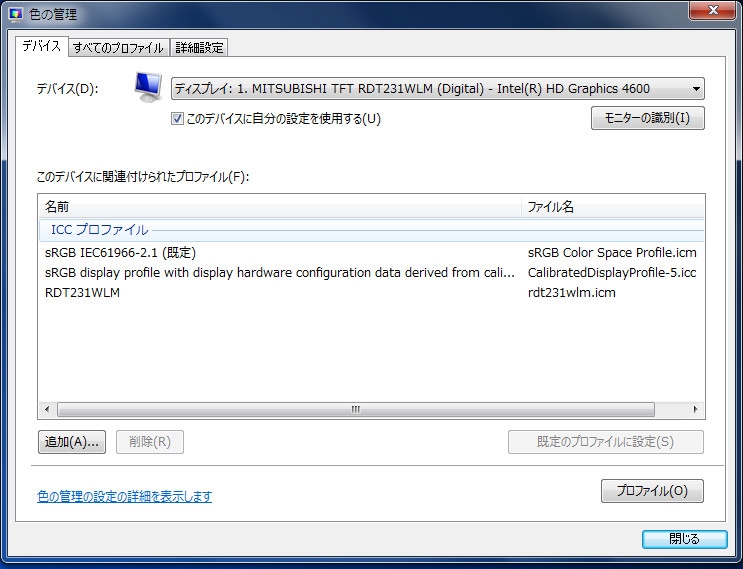 Win7[色の管理]の設定画面
