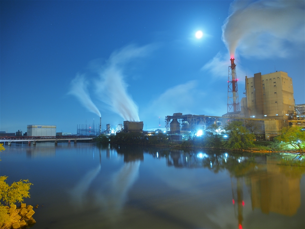 高岡市内の製紙工場(小矢部川河口付近にて)