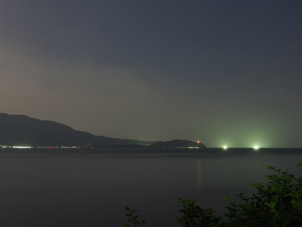 敦賀半島 立石岬方を望む。漁火と灯台の灯りも見える。