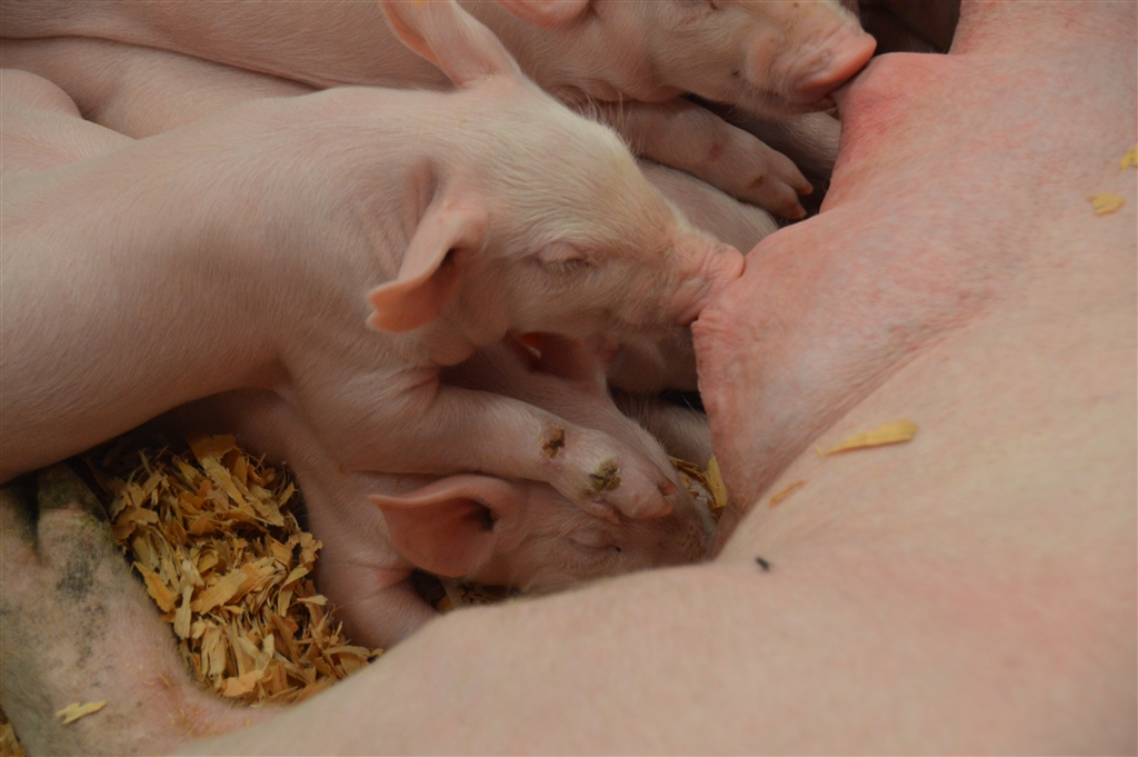90o F5.3 D3200で撮影 生まれたての子豚。子豚の上に子豚がのっかってます
