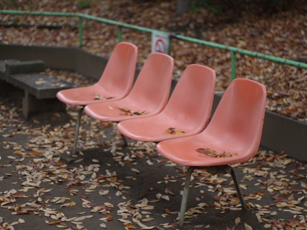 ベンチに落ち葉