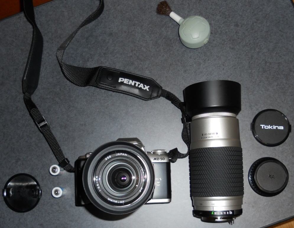 MZ-50から電池を取り出す。レンズの裏蓋にはKAと記載。