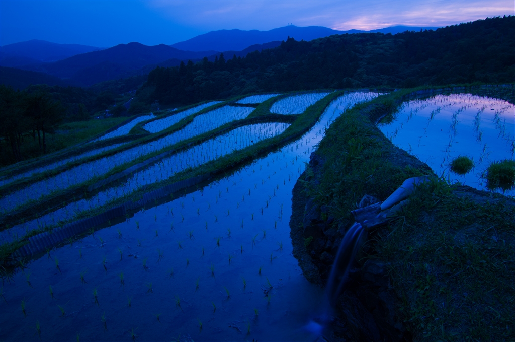 夕闇せまる山奥の棚田にも
