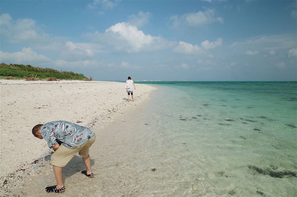 竹富アイアル浜。義母のために貝を探す義父。
