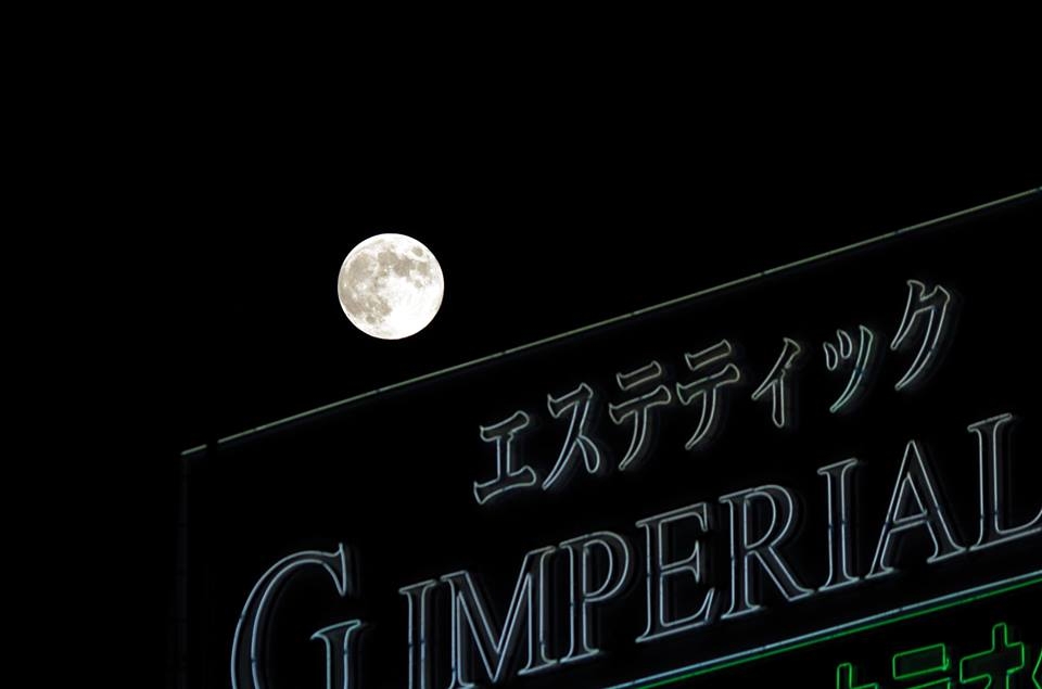 月、ネオン、街頭