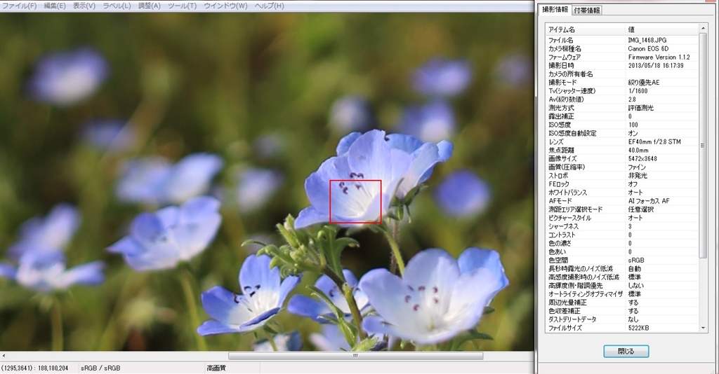 フォーカスエリア(等倍)