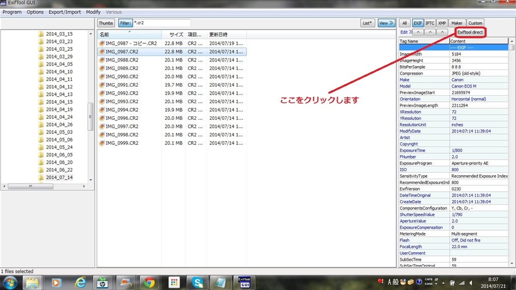 ExifToolGUIの操作画面