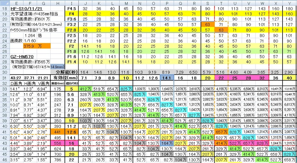 550mm相当の光学解像力の上限推定