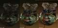 絞りはオートにして、シャッタースピードを1/60秒,1/30秒,1/8秒に分けてそれぞれ撮影し、等倍の一部切り出しを並べました。