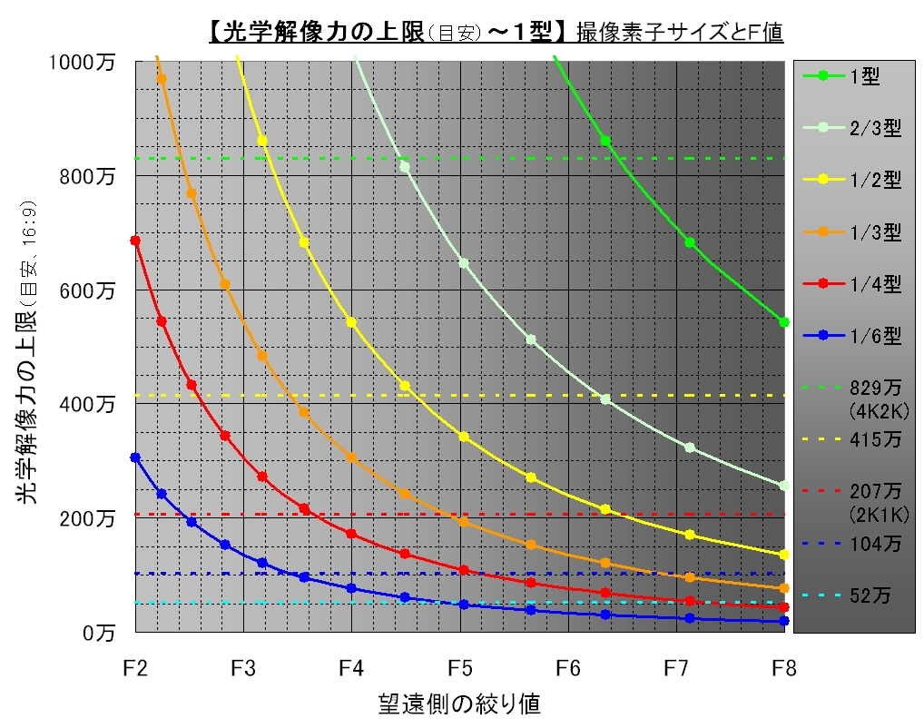 光学望遠端の解像力_撮像素子サイズとF値