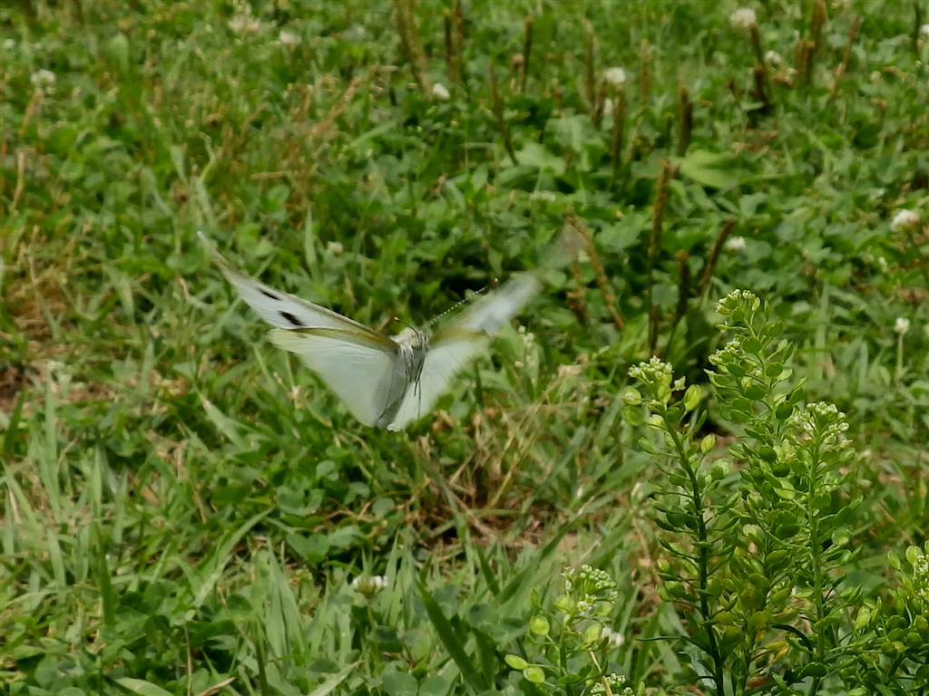 モンシロチョウの産卵。 |