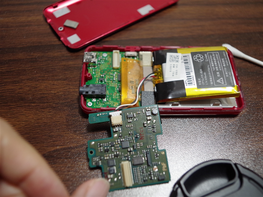 アルコール綿棒でバッテリーを剥がす。基板はコネクタがあるので硬かった