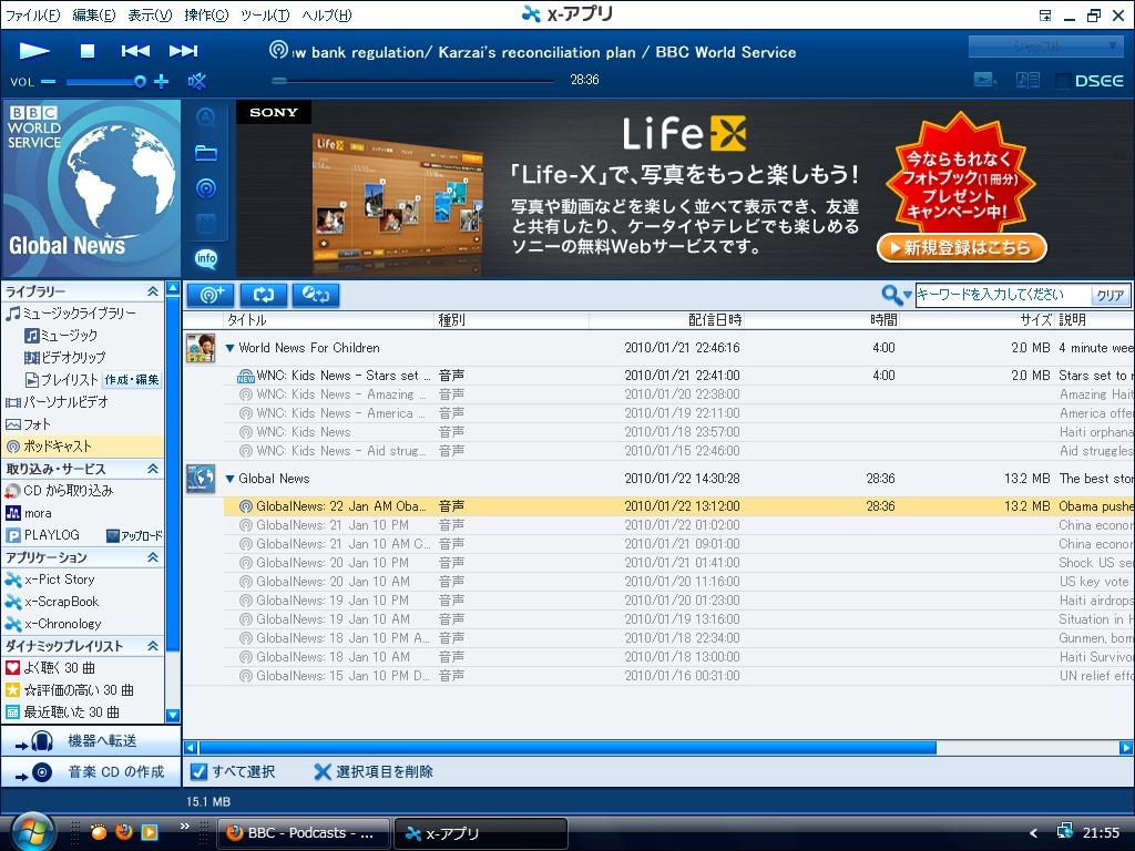 『XアプリのPodCast管理画面です』SONY NW-S644 [8GB] 大介殿さんのクチコミ掲示板画像1/2