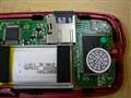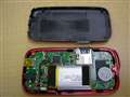 基板上にはメモリ・コントローラチップ・充電池・SDカードソケット・USB端子・オーディオ端子で、裏面にディスプレーとボタン類が見えます。
