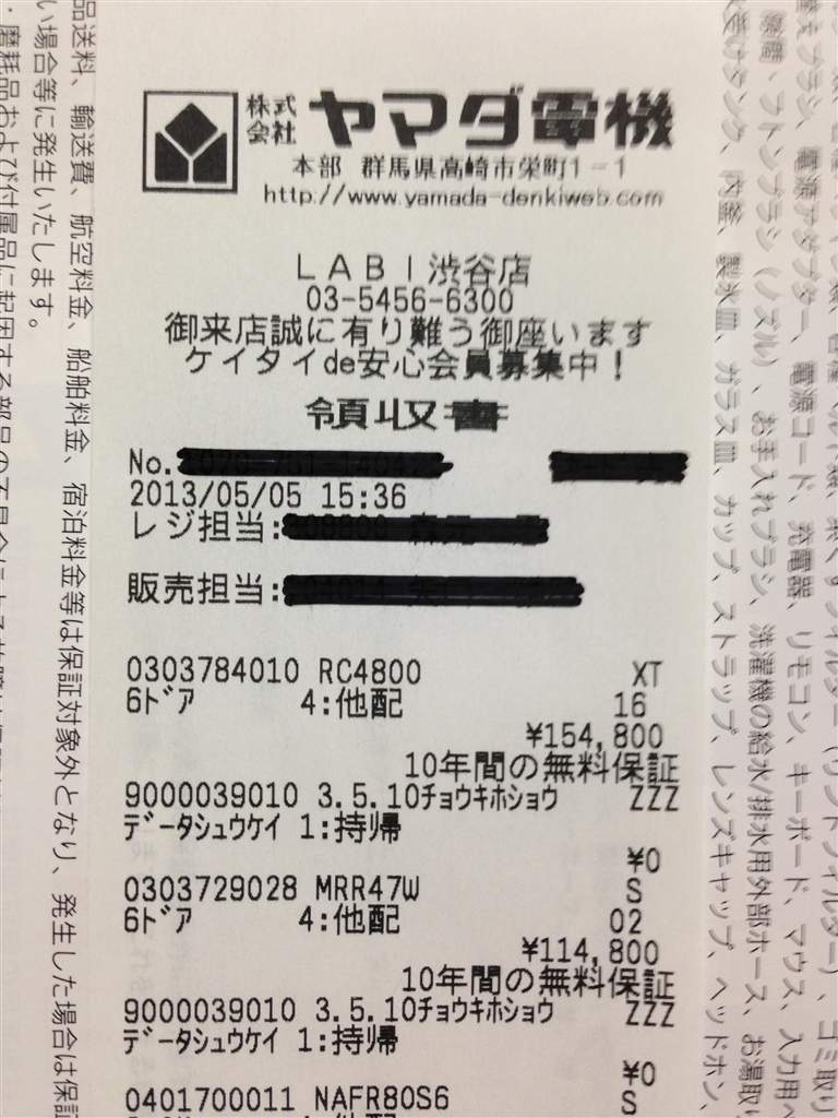 『レシート』三菱電機 MR-R47W さとぴしさんのクチコミ掲示板画像1/1