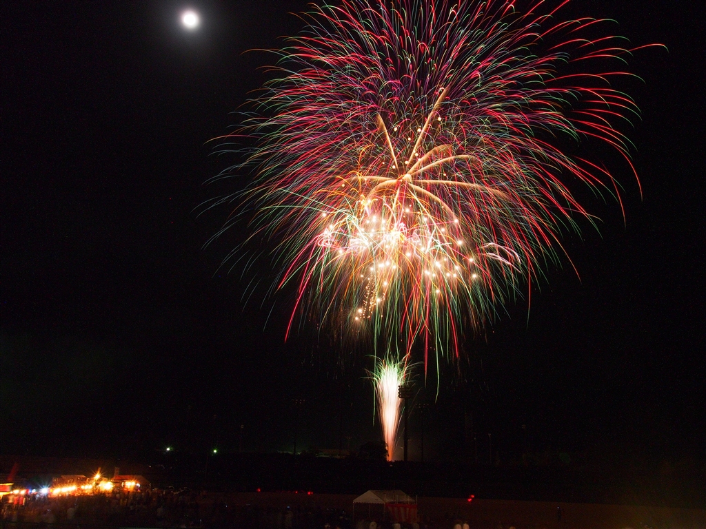 コニカ小型8段三脚で撮った福岡県田川郡川崎町の花火大会(100秒)