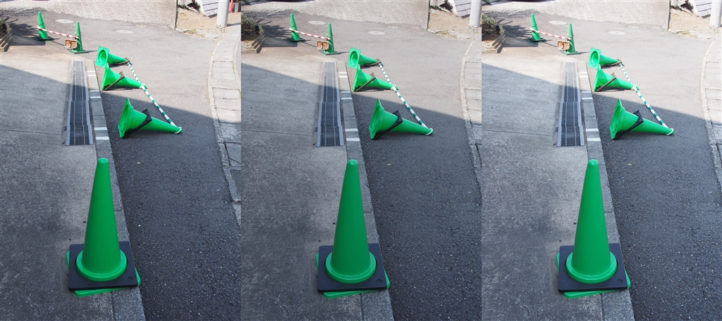 左:日なた露出 右:日陰露出 中:日陰を暗く加工