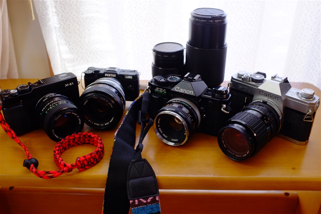 我が家のFDマウントレンズ、ボディです。Q7では超望遠撮影も楽しめます。