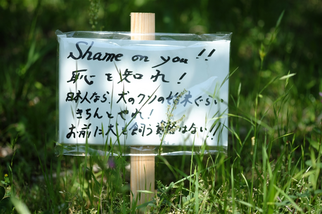 凄い立て札を発見!マナーを守らない人が多いのですね。