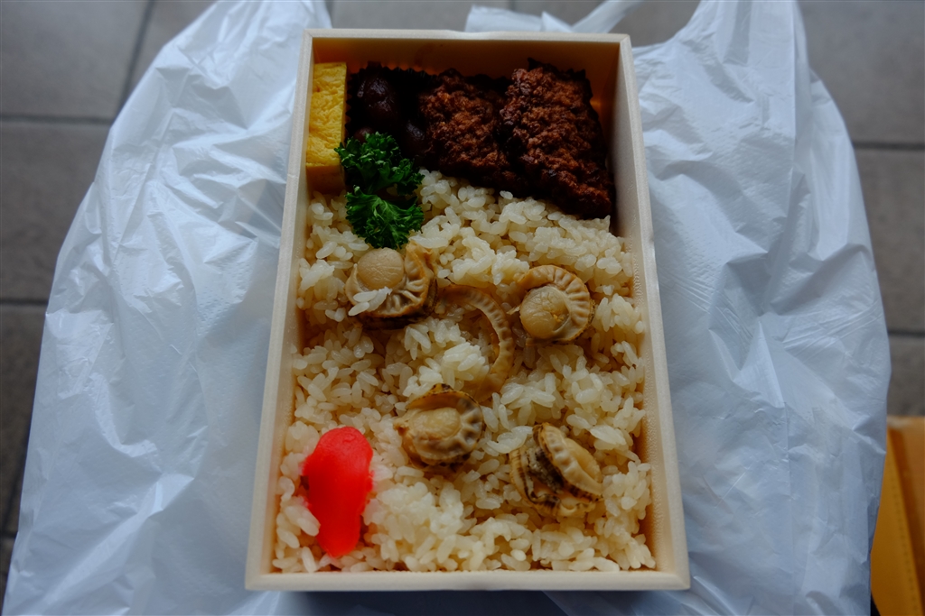 ホタテのごはんと「イカメンチ」が入っています。