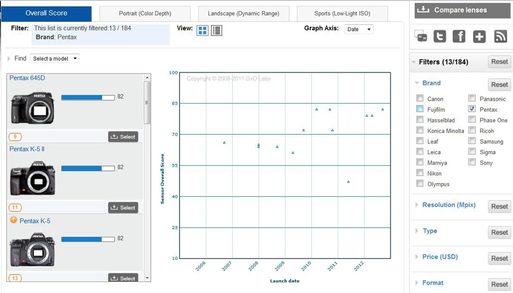 ペンタの撮像素子の性能t得点