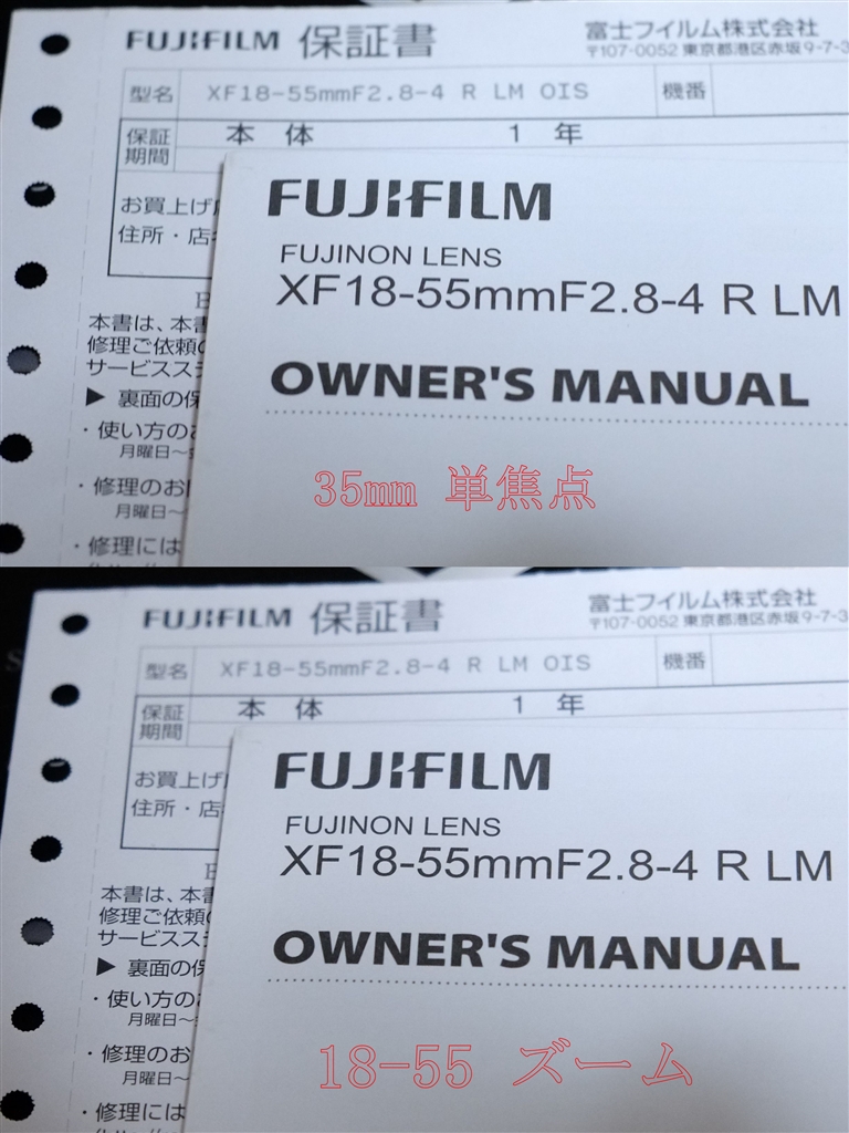 上が単焦点 下がズームです