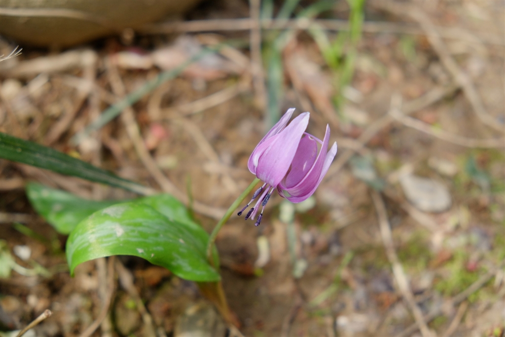 庭に一輪だけ咲いたカタクリ