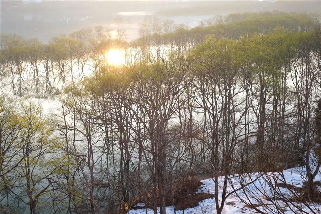 湖面に反射した太陽を入れていますけど、ゴースト・フレアは出ていません。