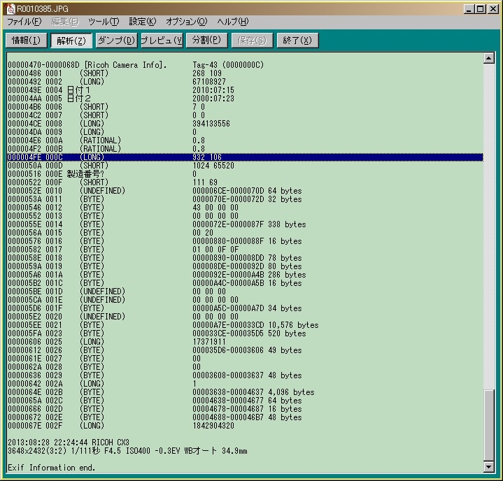 Jpeg Analyzer 全てのタグ表示にする