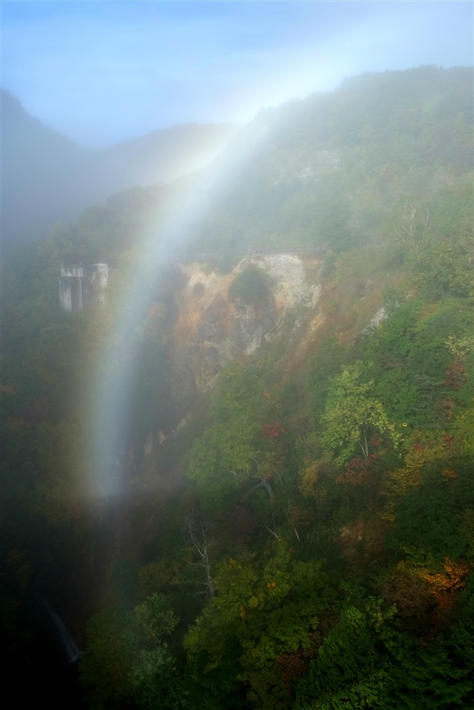 谷底から立ち上げる白い虹です。
