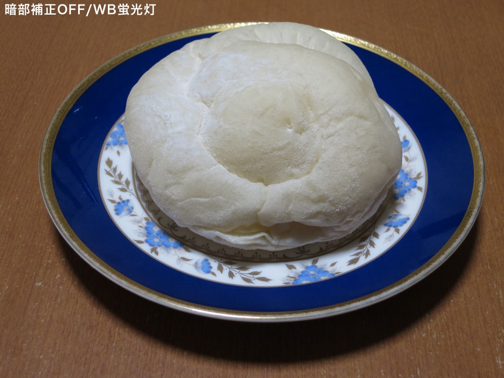ホワイトバランスを蛍光灯に。