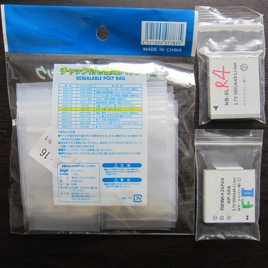 電池を入れる密閉袋は30枚で105円也