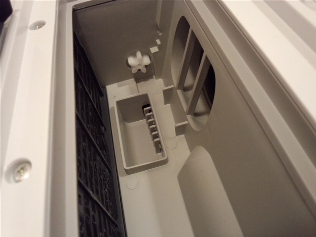 写真左側、乾燥フィルター(奥)の上にある2本のネジ